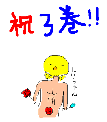 さっきまで友人と3巻お(・∀・)め(・∀・)で(・∀・)と(・∀・)う!絵チャしておりました!